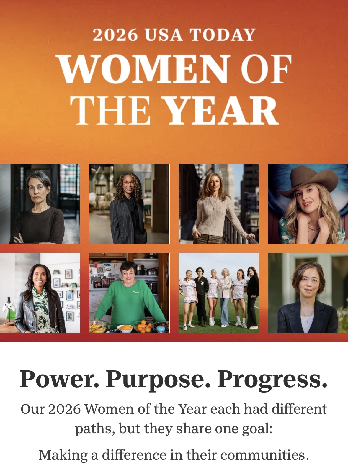 I was the lead visual editor on USA TODAY’s 2026 Women of the Year, honoring women who are making positive and game-changing impacts in their respective fields and communities. I was intentional about choosing women photographers across the U.S. to capture the honorees because the representation in front of the camera is just as important as the representation behind it. I collaborated with key internal and external stakeholders to plan and organize the shoots, and I provided the photographers with informative and visually aesthetic storyboards that were unique to each subject’s story. The portraits elevated the piece, showing the honorees in their element and providing a peek into their lives. You can view the full project by clicking here.